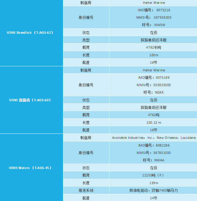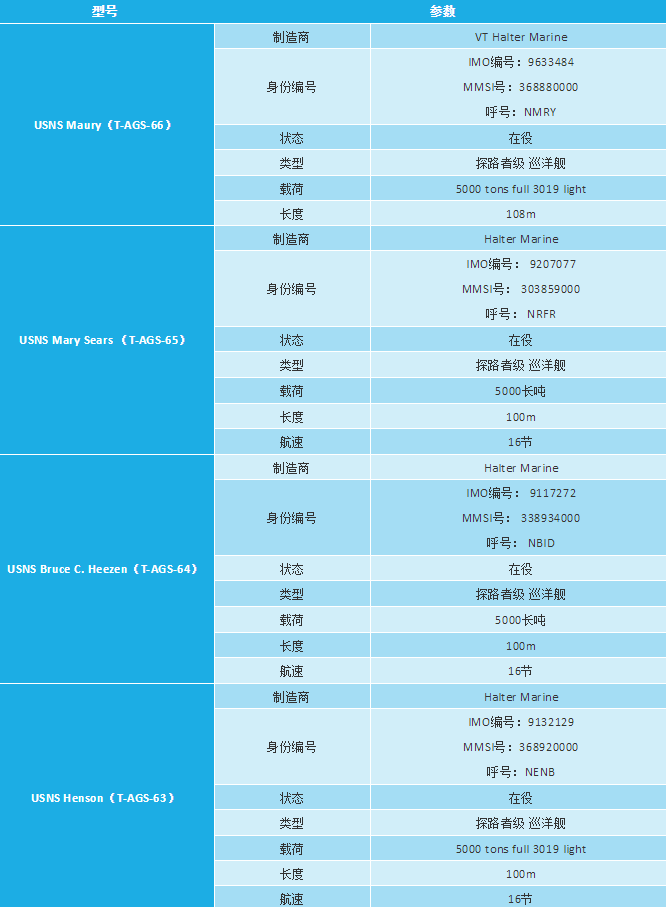 美国现役的海洋测量船(T-AGS)主要有: