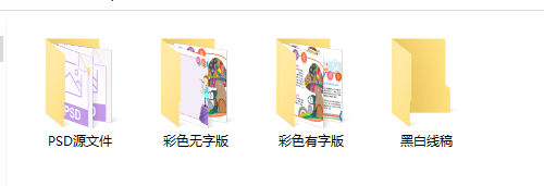 メPSD源文件,彩色无字版,彩色有字版,黑白线稿,多样式选择。メ