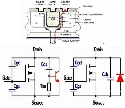 2、雪崩损坏 MOSFET 有两种情况:一种是快速高功率脉冲,直接使寄生二极管产生较大雪崩电流,芯片快速加热过温损坏。另一种是寄生三极管导通,并发生二次击穿?