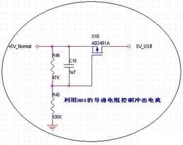 问题 12:1、请教一个 AO3401A 的问题:现在使用 AO3401A 的导通电阻 RDS(on)作为隔离电阻,用来缓冲热插入移动硬盘的瞬间冲击电流,防止瞬间把主机芯电压拉低,电路图如下,5V_USB 是插移动硬盘的地方,+5V_Normal 来自主机芯电压。将 VGS 设计在固定的 -1.6V 左右,此时的 RDS(on)大约在 100mΩ左右,插上移动硬盘瞬间的冲击电流由原来的 9A 下降到了 5A 左右,冲击电流持续时间 80 微秒左右,效果很明显,移动硬盘正常工作时电流约 300mA。如果将 VGS 设计在 -2.5V 左右,RDS(on)只有几十 mΩ,对冲击电流的抑制作用不大。这个电路的设计原则是什么?