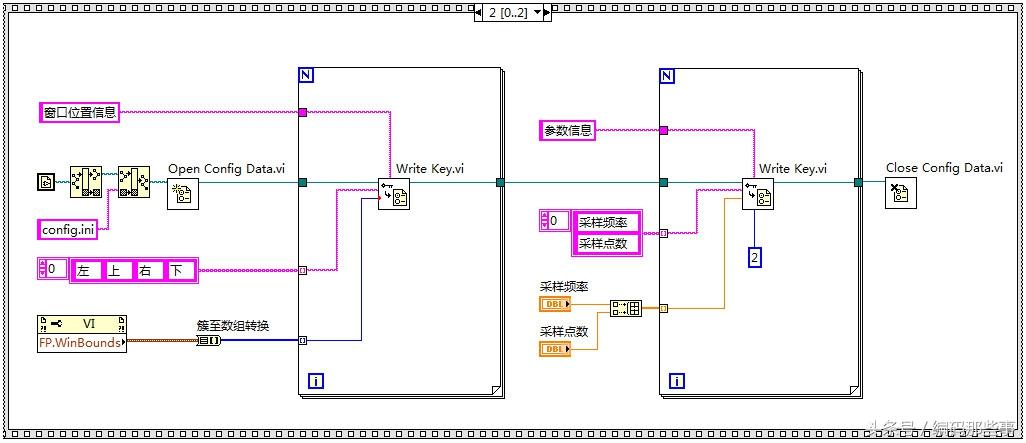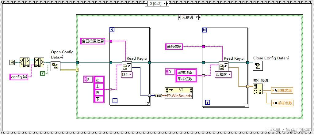 使用“Read Key.vi”分别读取这些键值对信息,使用VI的属性节点设置主窗口的位置大小信息以及采样频率和采样点数的初始值信息。
