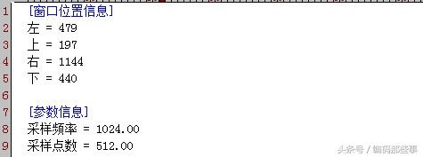 配置文件“config.ini”中的内容包含两个字段“窗口位置信息”和“参数信息”,前者包含了左、上、右、下4个键值对,后者包含了采样频率和采样点数2个键值对,如下图所示: