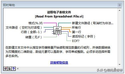 2、“读取电子表格文件”函数,其参数意义说明如下图所示: