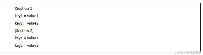 ini文件又称配置文件,它是一种以特定方式组织操作系统或软件配置信息的文本文件。它最早出现于Windows操作系统中,用于统管Windows的各项配置,后来,其理念被广泛使用到其它操作系统和各种应用软件中,常用于保存程序的一些配置参数,如网络配置的IP地址、端口号等信息,其典型的文件格式如下图所示: