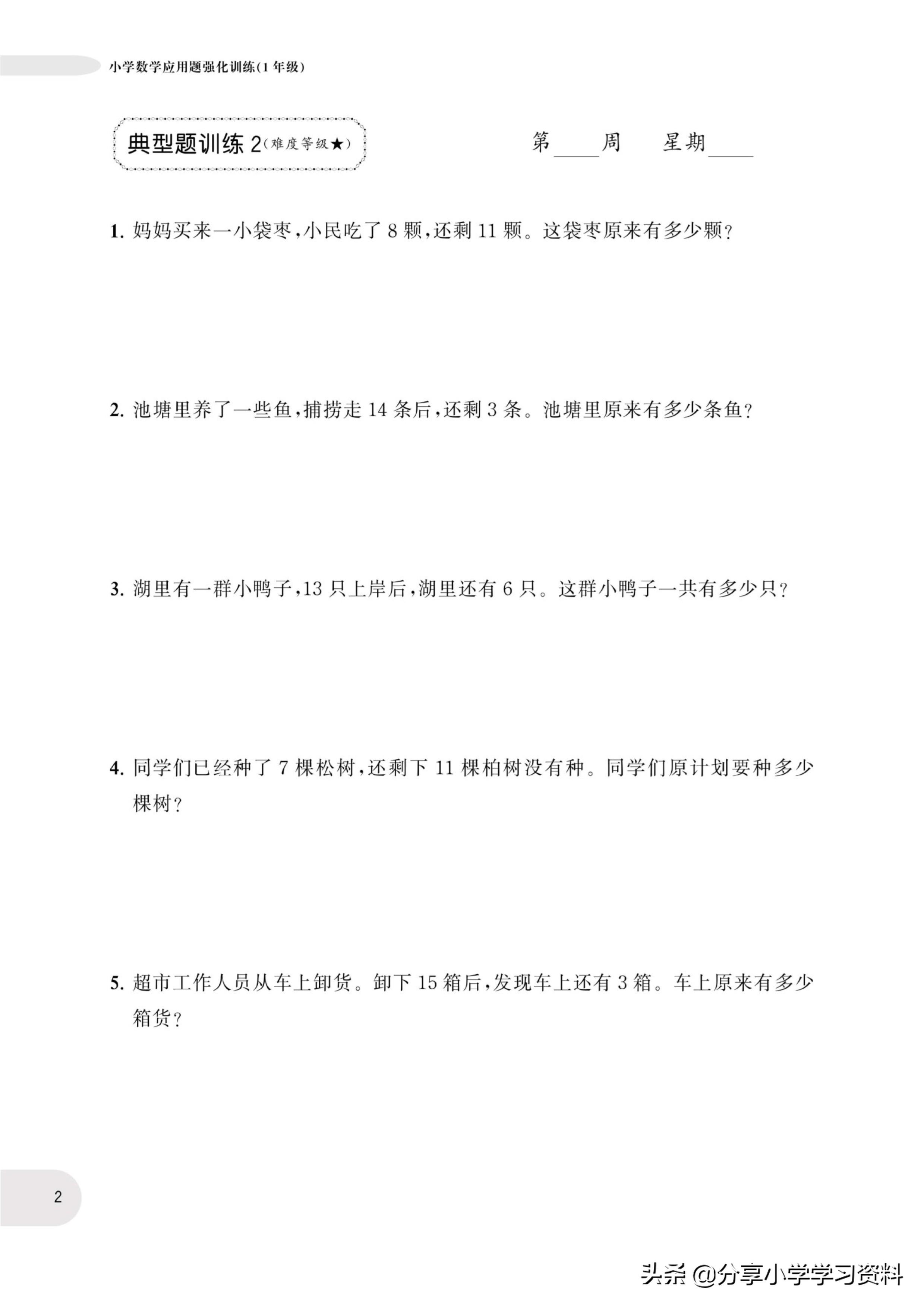 小学数学1年级上册应用题强化训练(有电子档)附答案