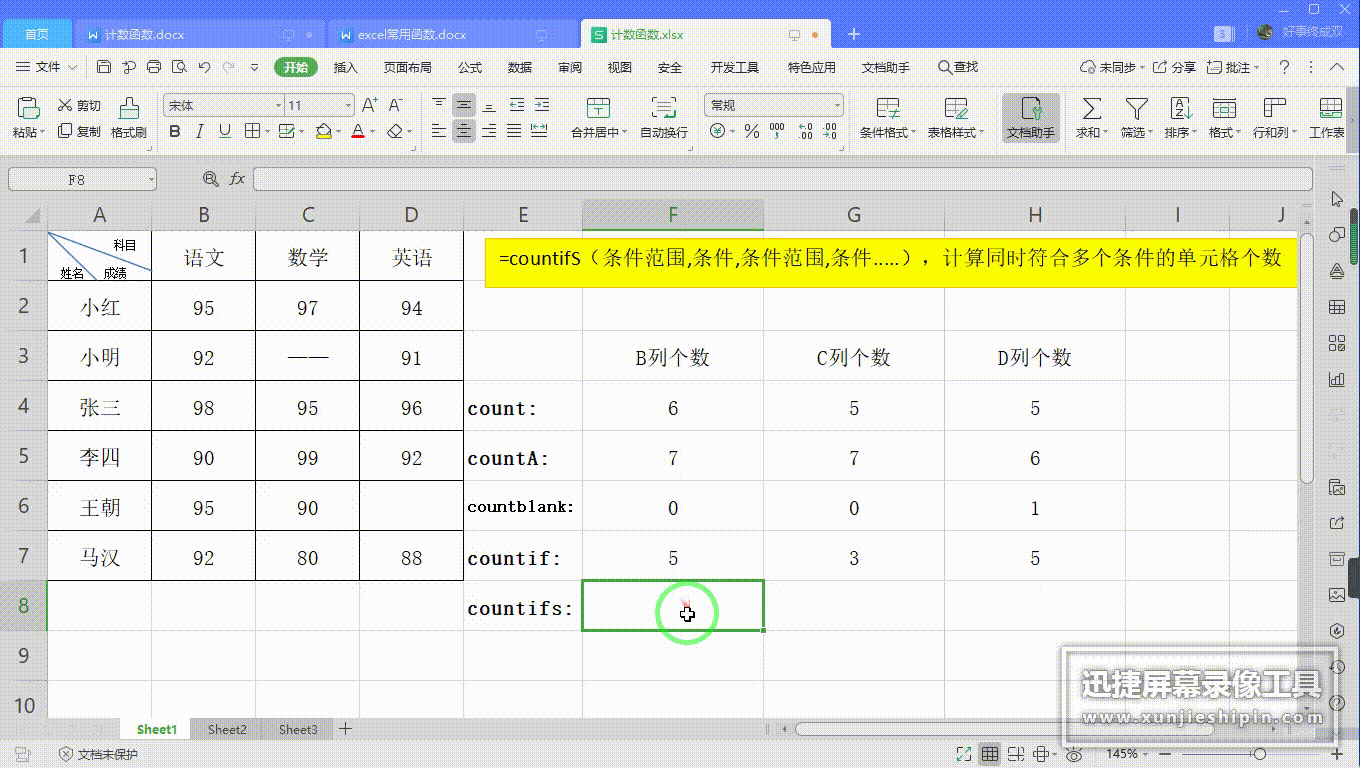 5.Countifs函数: 统计符合多条件的单元格个数(同时符合多条件)