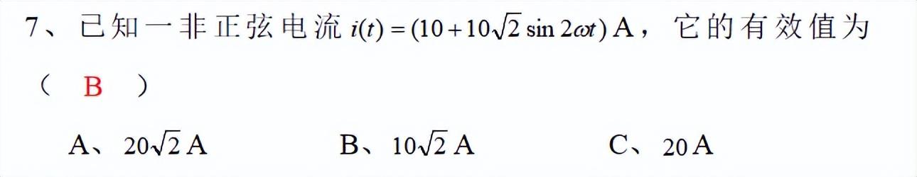 4、一个含有直流分量的非正弦波作用于线性电路,其电路响应电流中( A )