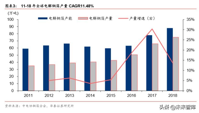 11-18 年全球电解铜箔产量 CAGR11.48%