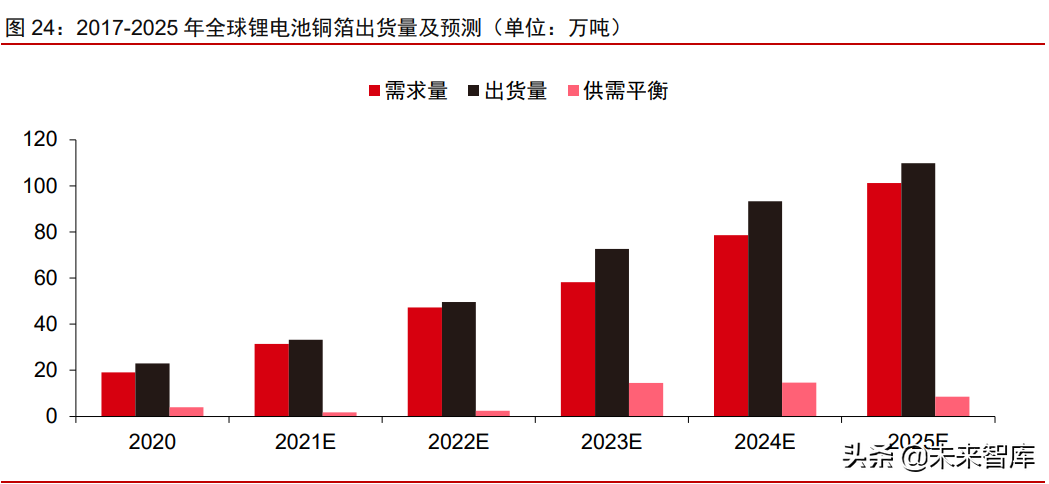 供应端:2025 年全球锂电铜箔名义产能将达到 118 万吨