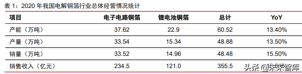 2020 年我国电解铜箔行业保持稳定增长。我国电解铜箔行业发展现状 2020 年我国电解铜箔行业保持稳定增长。(报告来源:未来智库)