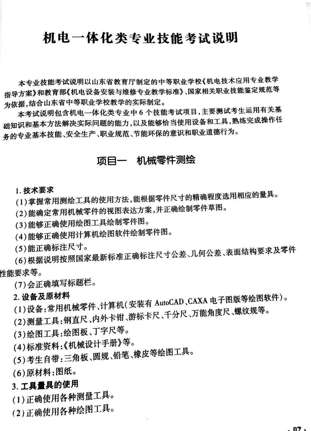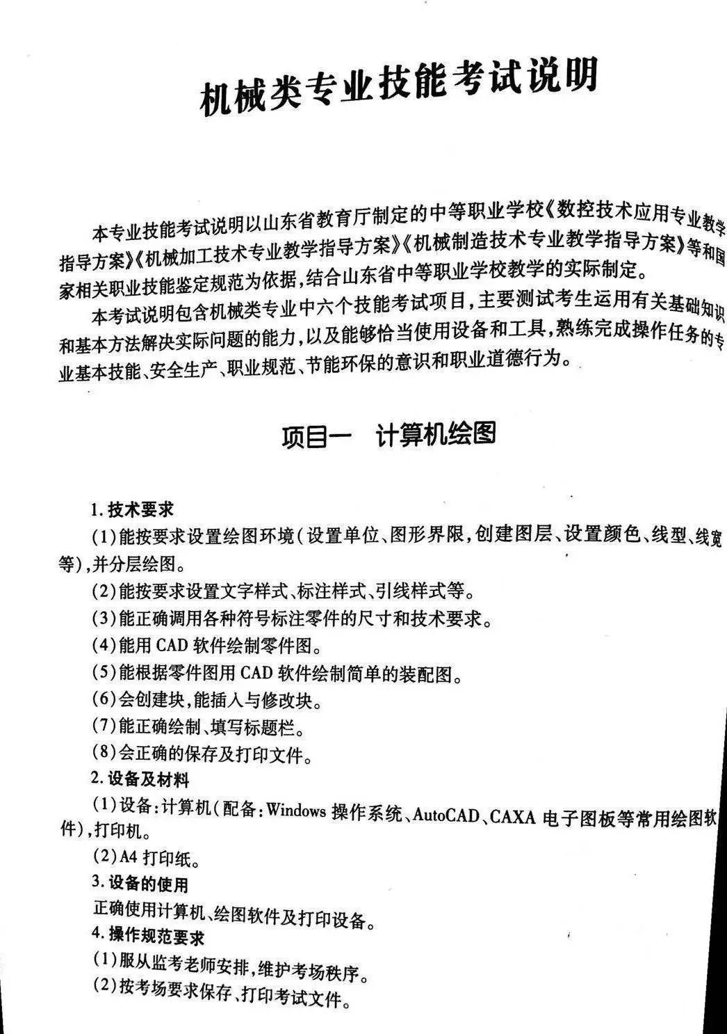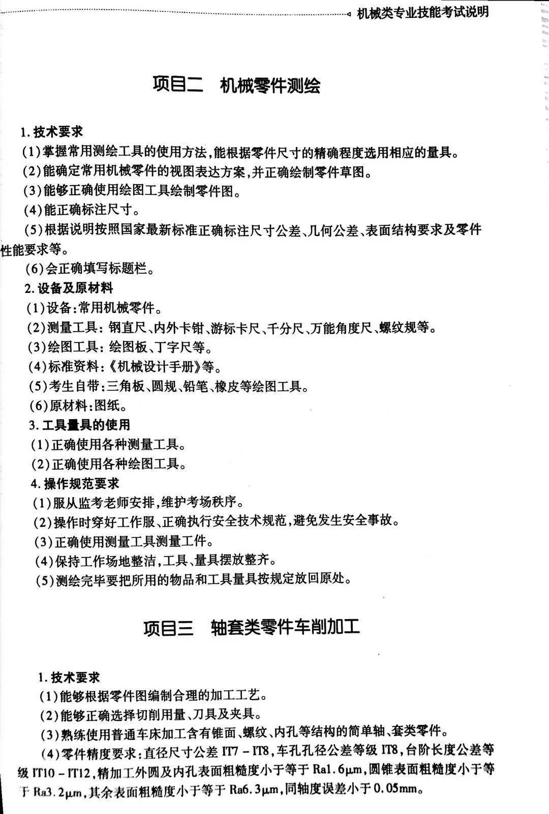 机械类专业技能考试说明
