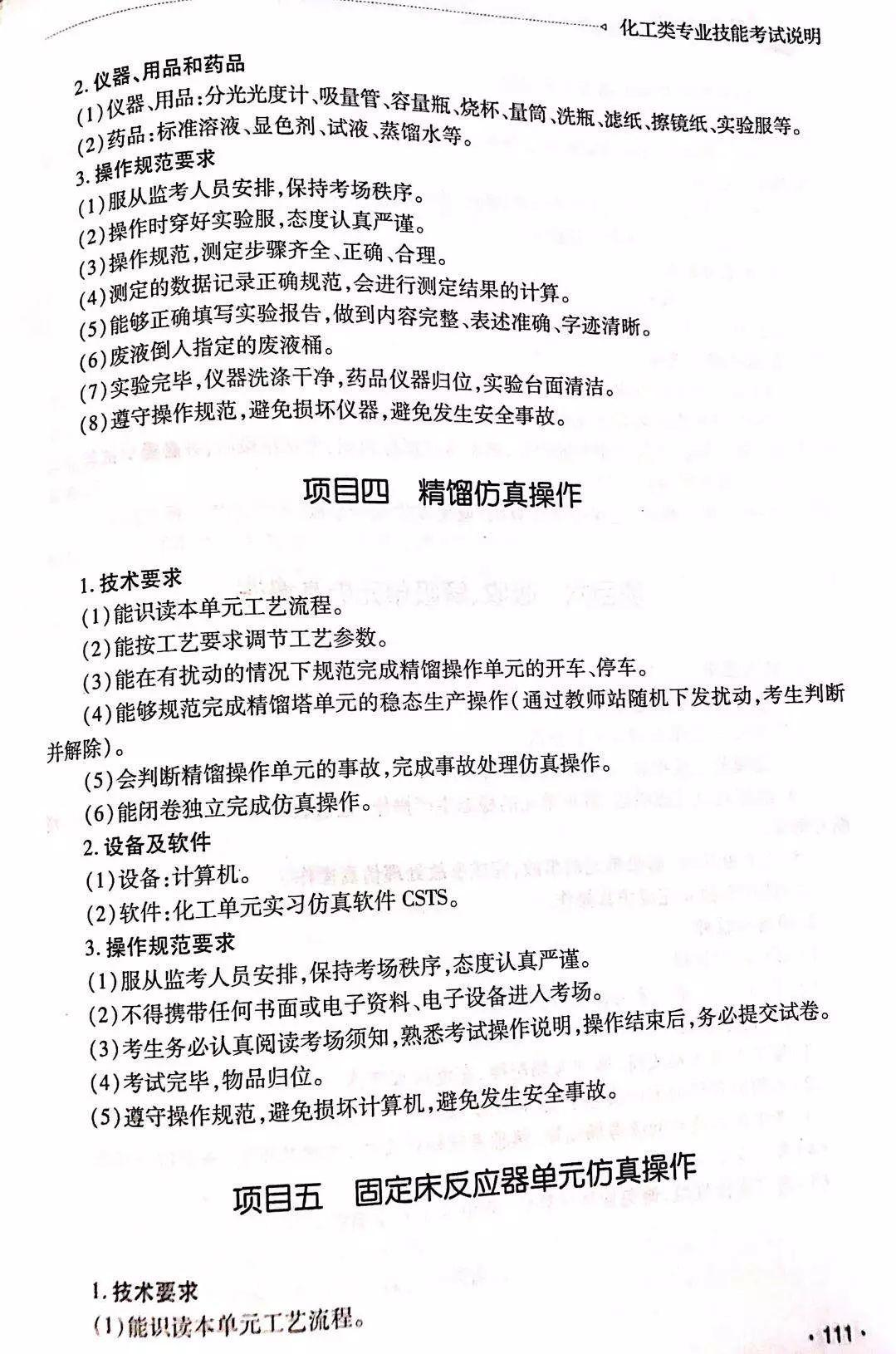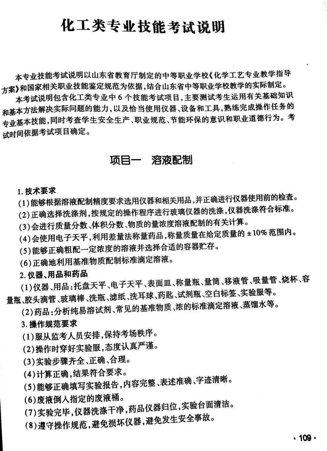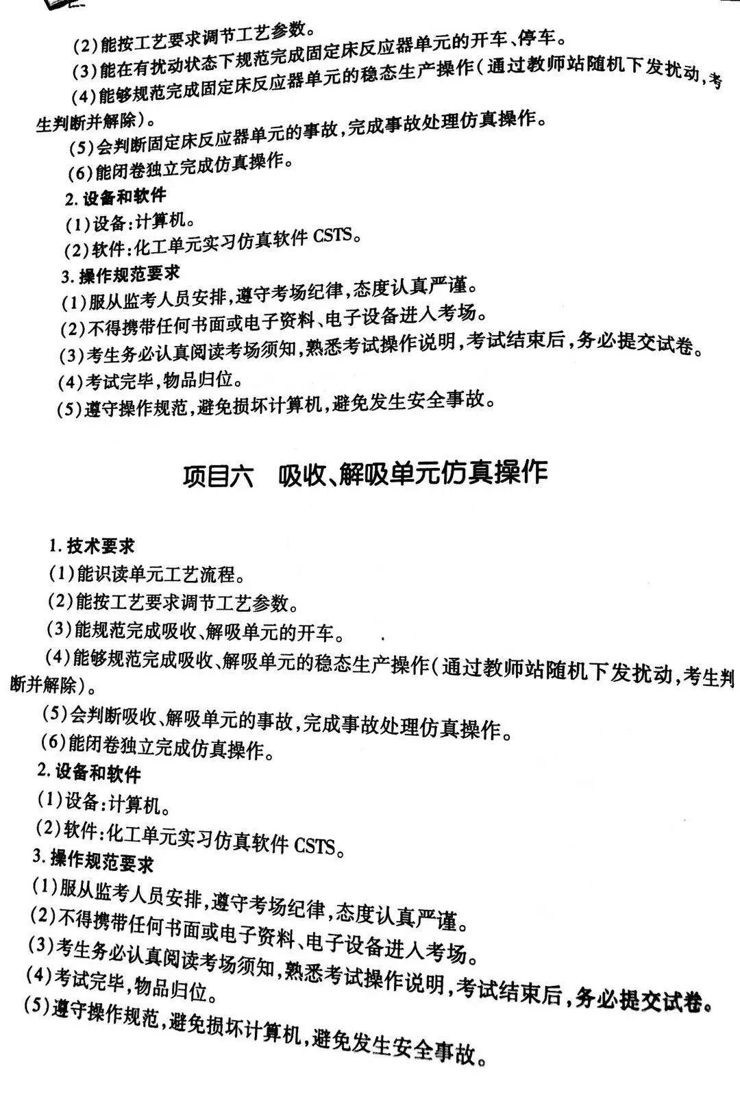 化工类专业技能考试说明