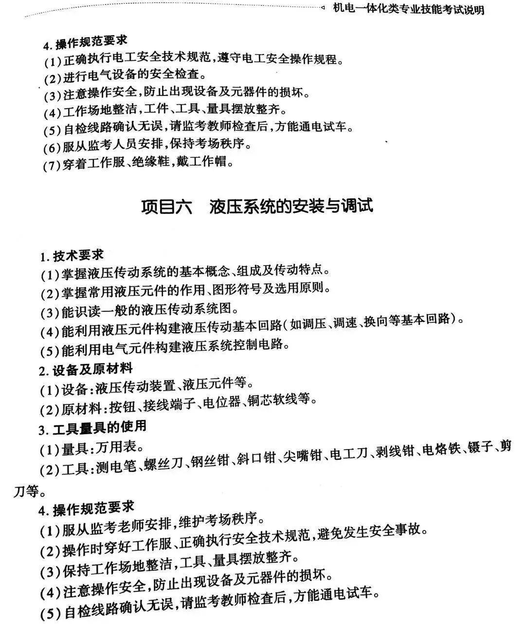 机电一体化类专业技能考试说明