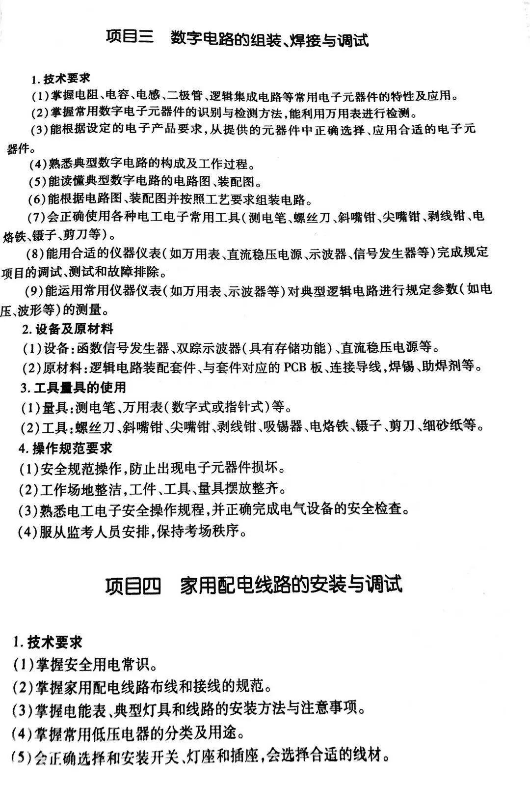 电工电子类专业技能考试说明
