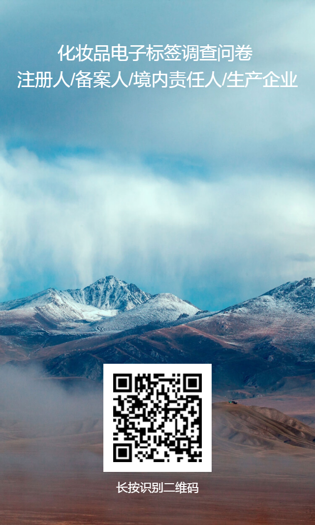 为充分了解行业现状,听取对化妆品电子标签的意见建议,重庆市药品监督管理局按照课题组安排,结合课题研究内容,向监管部门、注册人备案人及生产企业(含境内责任人)、化妆品经营者、消费者等与化妆品密切相关的对象开展问卷调查。此次调研信息仅供研究使用,课题组将会严格保密,请于2024年6月30日 前完成问卷,非常感谢您的参与!