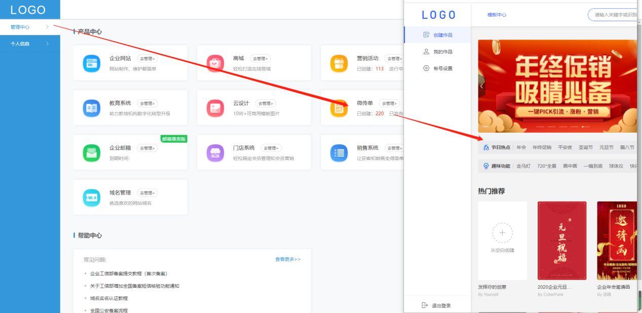 2、登录到后台管理页面,点击【管理中心---微传单--去管理】就可以看到许多类型的模板。