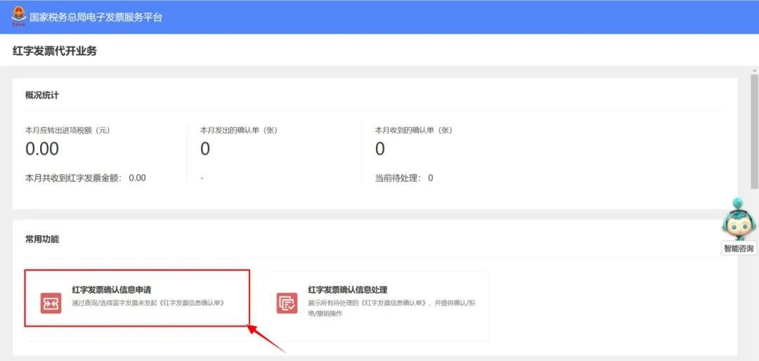 点击【红字发票确认信息申请】发起红字发票信息确认单。