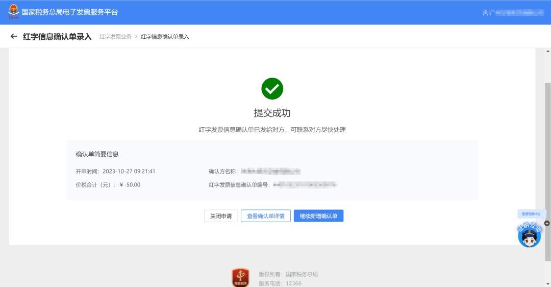 图 5红字信息确认单提交成功