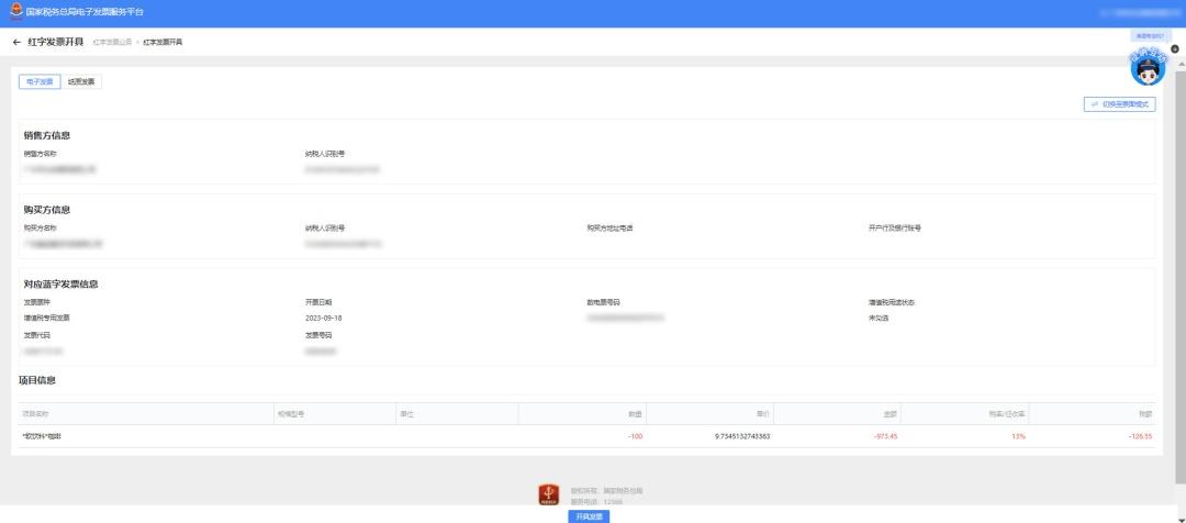 图 8红字发票开具-票面模式