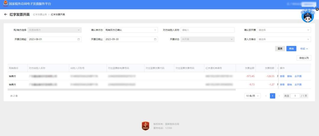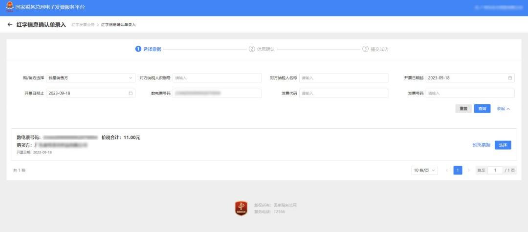 图 2查询需要冲红的蓝字发票信息