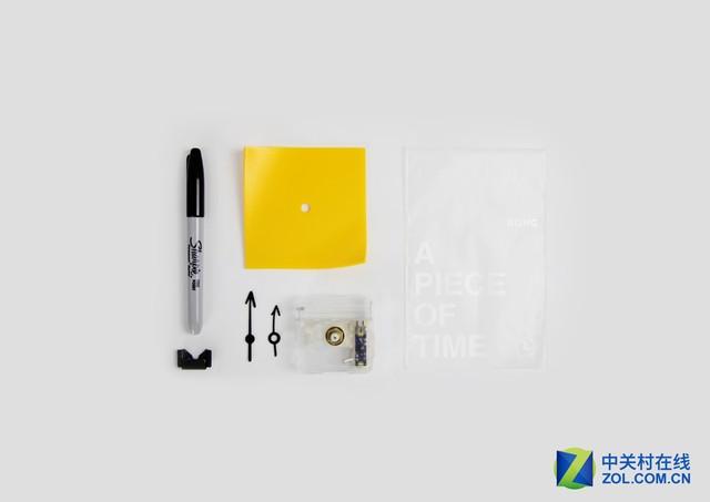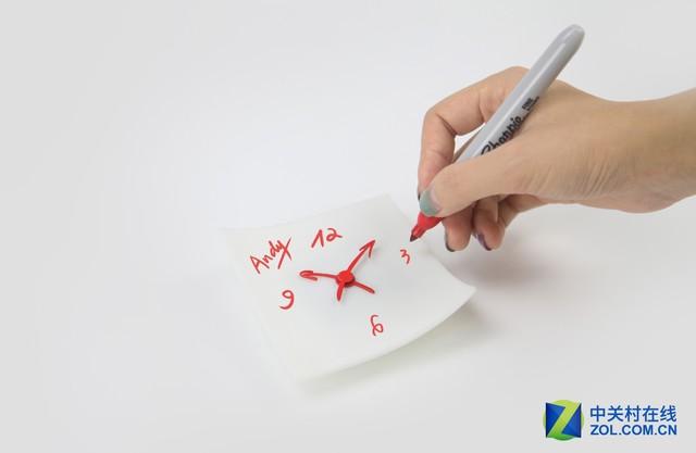 看起来这只是一款非常普通的便签,并没有什么神奇之处。而设计师为便签设计了时针和分针,当然了,还有重要的电池模块。那么,又该如何使用呢?相信聪明的你已经明白了。设计师表示,用户可以使用记号笔,在便签纸上画出小时钟的表盘。