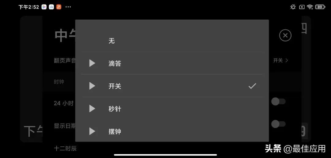 想要有钟表声音效果的,可以打开“翻页声音”,里面的几种音效效果都非常不错,除此之外这款软件还有很多小细节,例如支持24小时制,点击表盘上的星期/秒数可以隐藏等,快给你的安卓手机安装去吧。