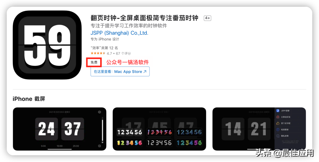 苹果端的翻页时钟上架到商店的有很多,大家下载的时候一定要认准下图显示的这个,