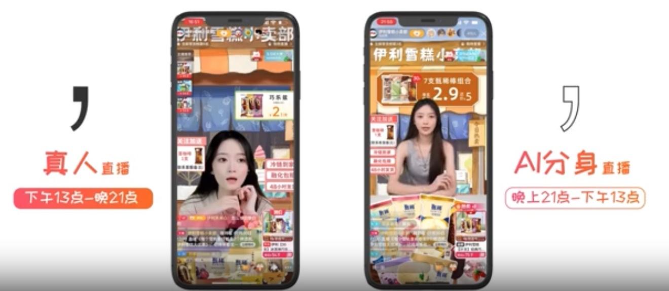 作为最早入场的品牌客户之一伊利,从23年6月开始,数字人主播开始售卖伊利雪糕,真人主播仅在下午1点到晚上9点直播8小时,主播下线后,其余所有时间由数字人顶上。伊利雪糕首场开播即卖爆,半夜时段甚至数字人带货订单量超200。每天带来100%GMV增量,甚至在近7天销售中,数字人GMV和真人直播GMV的比例达到1:2,ROI +160%。