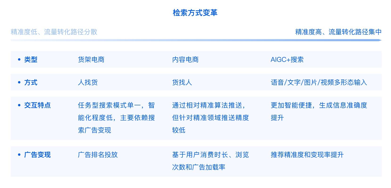选品可从传统搜索的多种建议转向单一建议。其互动性有望提升平台与消费者需求的匹配度,从而提升消费者与平台粘性,进一步形成高竞争壁垒。