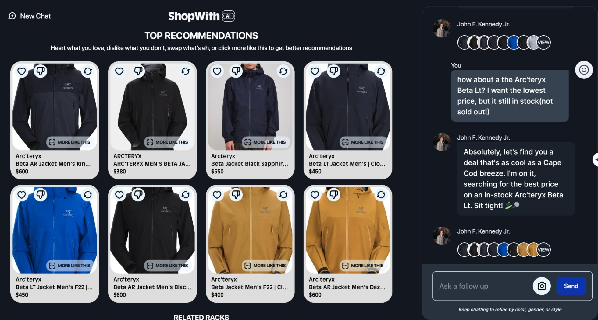 AI在理解用户的描述后(包含文字&图片),分析和比较不同平台的商品价格,帮助消费者做出更经济的购买决策,同时提供穿搭建议和相关商品推荐。