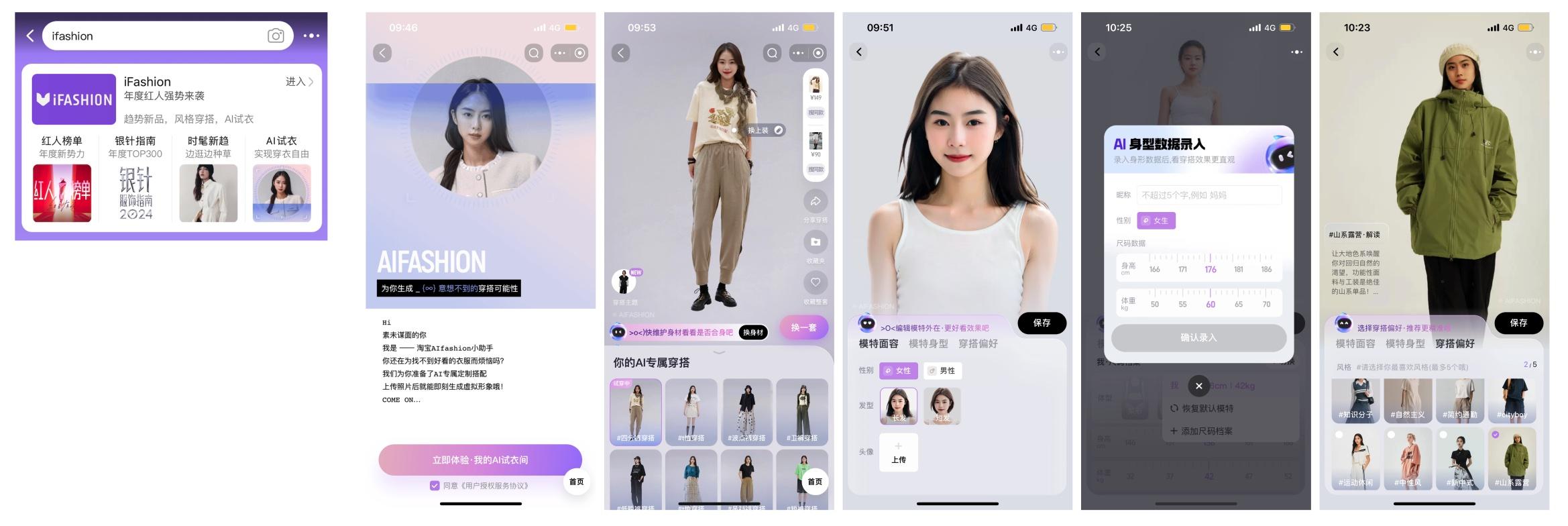 ifashion是淘宝推出的AI搭配工具和AI试衣间,既能帮助商家低成本生产穿搭内容,吸引用户、促进消费,也能帮助用户体验不同品牌间的跨店、跨品类穿搭效果,提供更真实的线上试衣效果。用户可以上传本人照片、选择身材,生成自己的AI数字人,由系统进行智能搭配推荐。