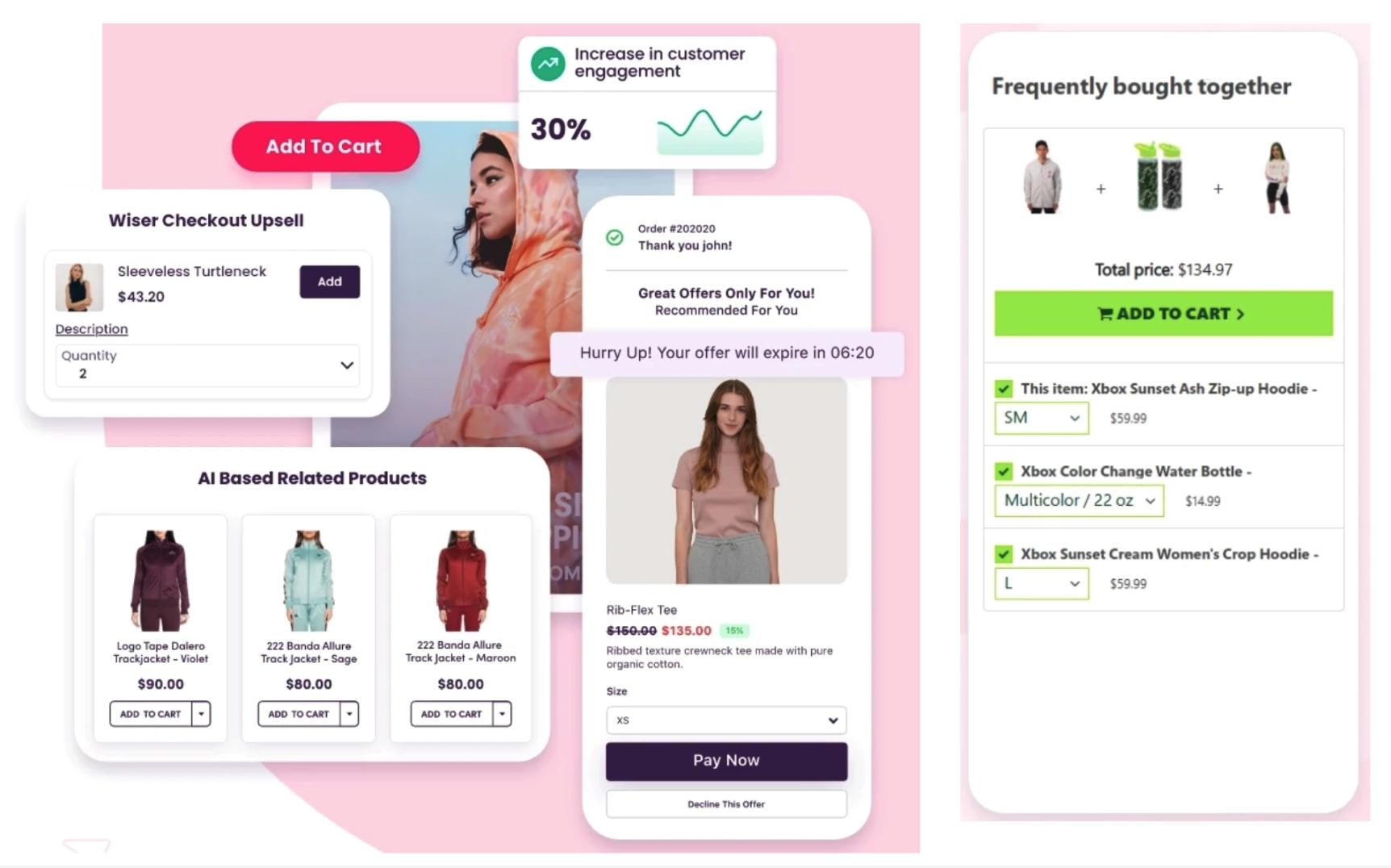 Wiser是一款shopify的插件工具。通过使用Wiser的个性化引擎,您可以在您的商店中显示个性化推荐,例如显示基于AI的经常一起购买的捆绑+折扣以一键销售、显示购后销售优惠和结账销售,以此增加平均订单价值和转化率。
