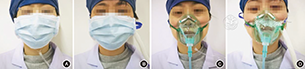 2.鼻导管给氧或经鼻高流量氧疗,可以在鼻导管外面戴一层外科口罩或面罩,减少病毒气溶胶的扩散(图1);有条件选择气密面罩或加用空气帐篷。