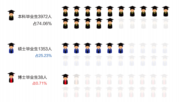 大连海事大学2019届毕业生总计5363人,其中本科毕业生3972人,占74.06%;硕士毕业生1353人,占25.23%;博士毕业生38人,占0.71%。