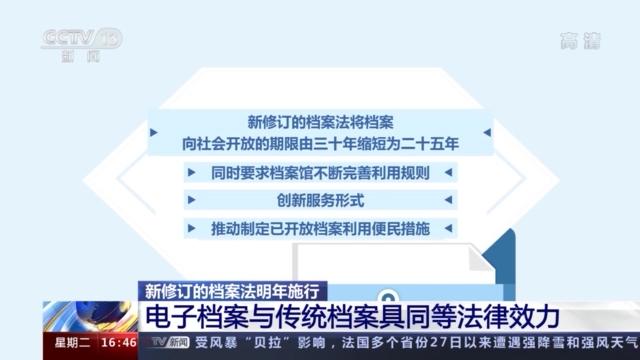 新修订档案法明年施行 电子档案与传统档案具同等法律效力