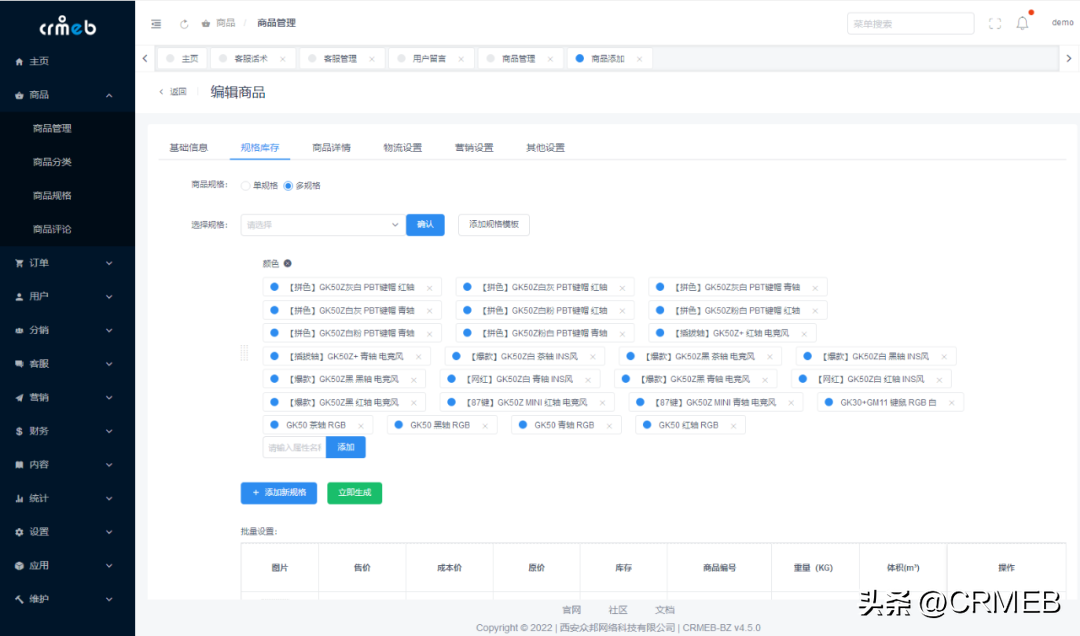 商品规格设置