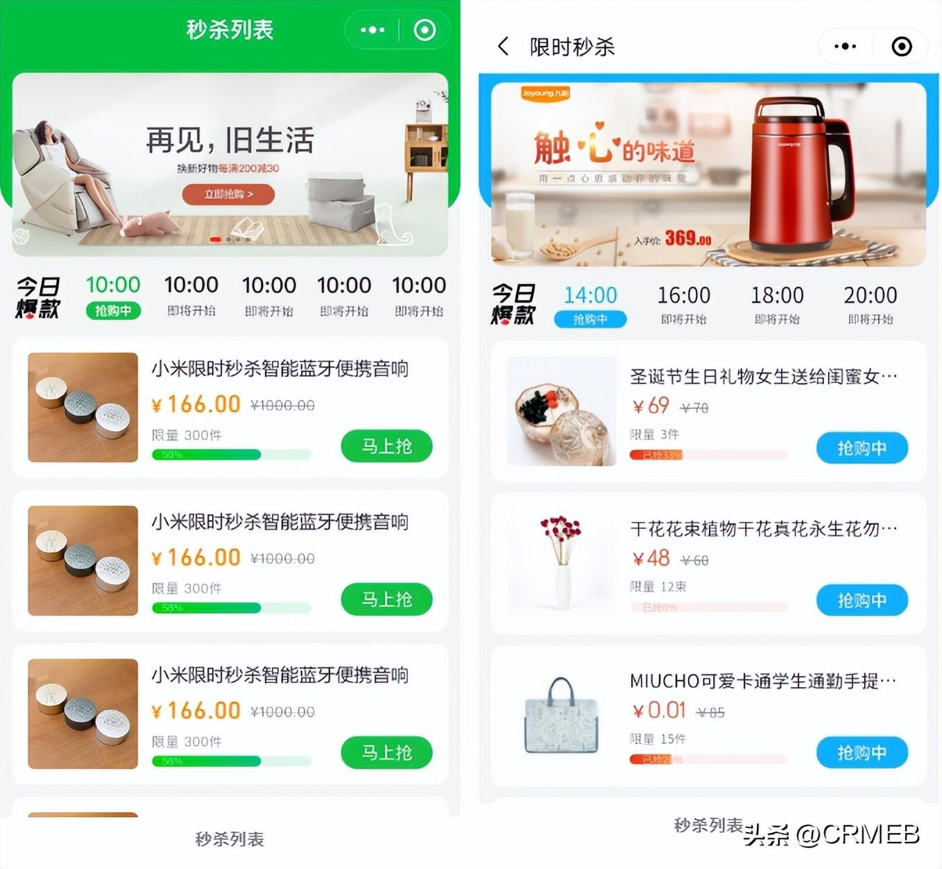 设置秒杀时限、商品优惠价格及数量,营造抢购气氛,吸引用户参与秒杀抢购。