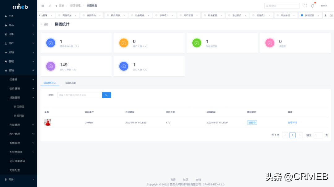 拼团活动数据统计
