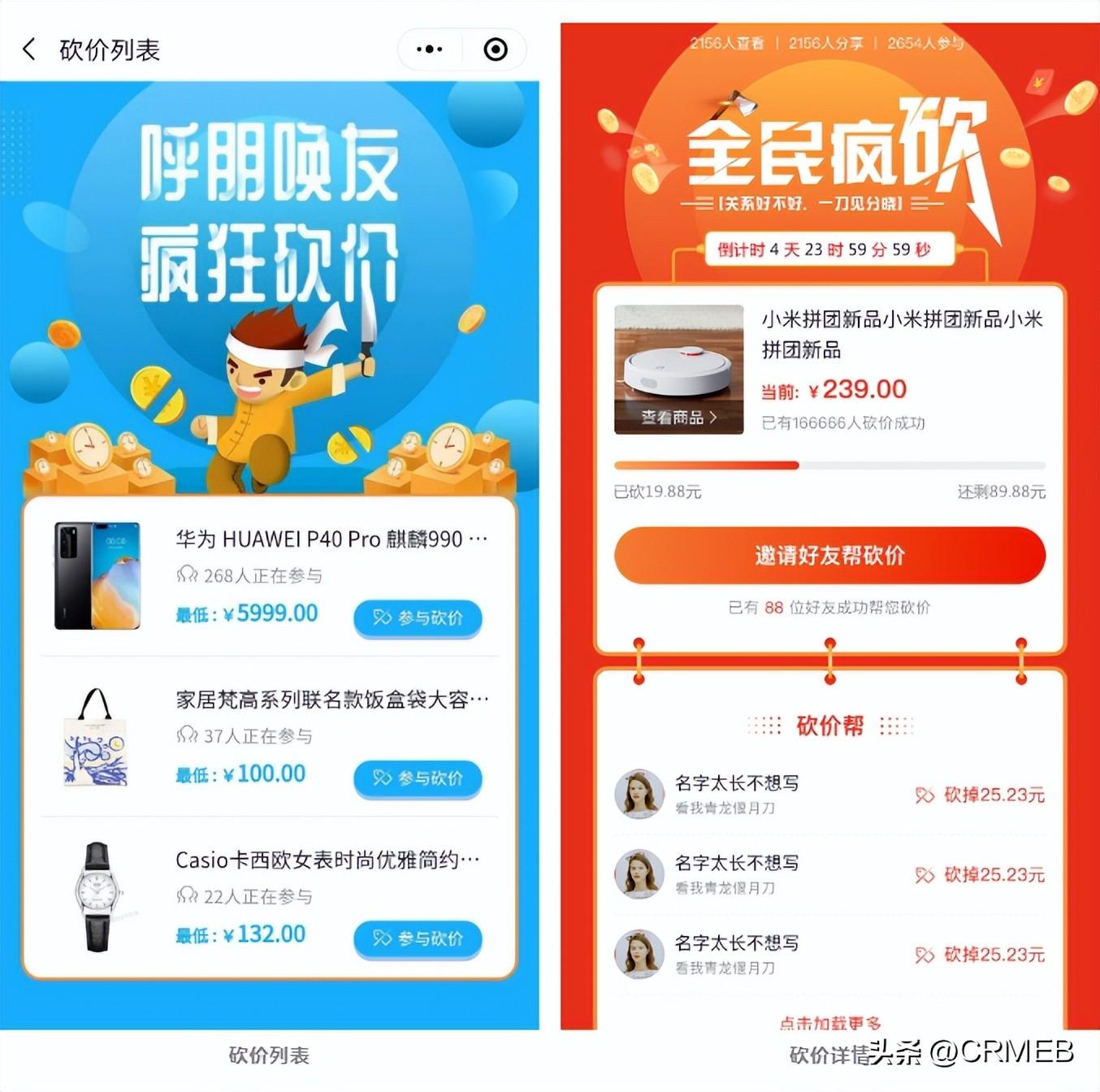 可设置优惠砍价活动,吸引用户邀请好友参与砍价,充分挖掘用户私域资源,拓展私域流量池。