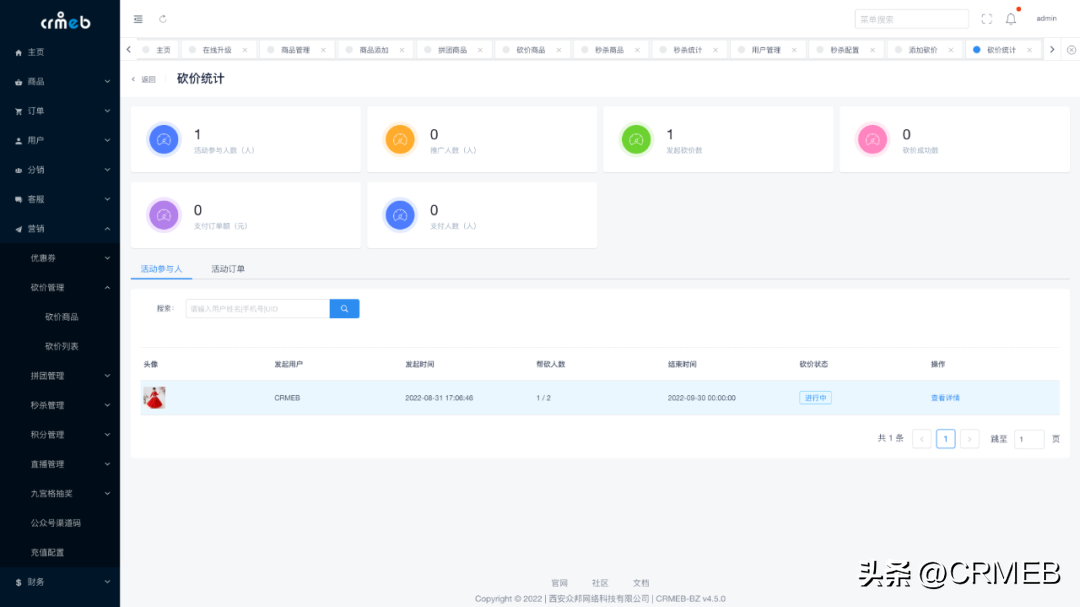 砍价活动数据统计