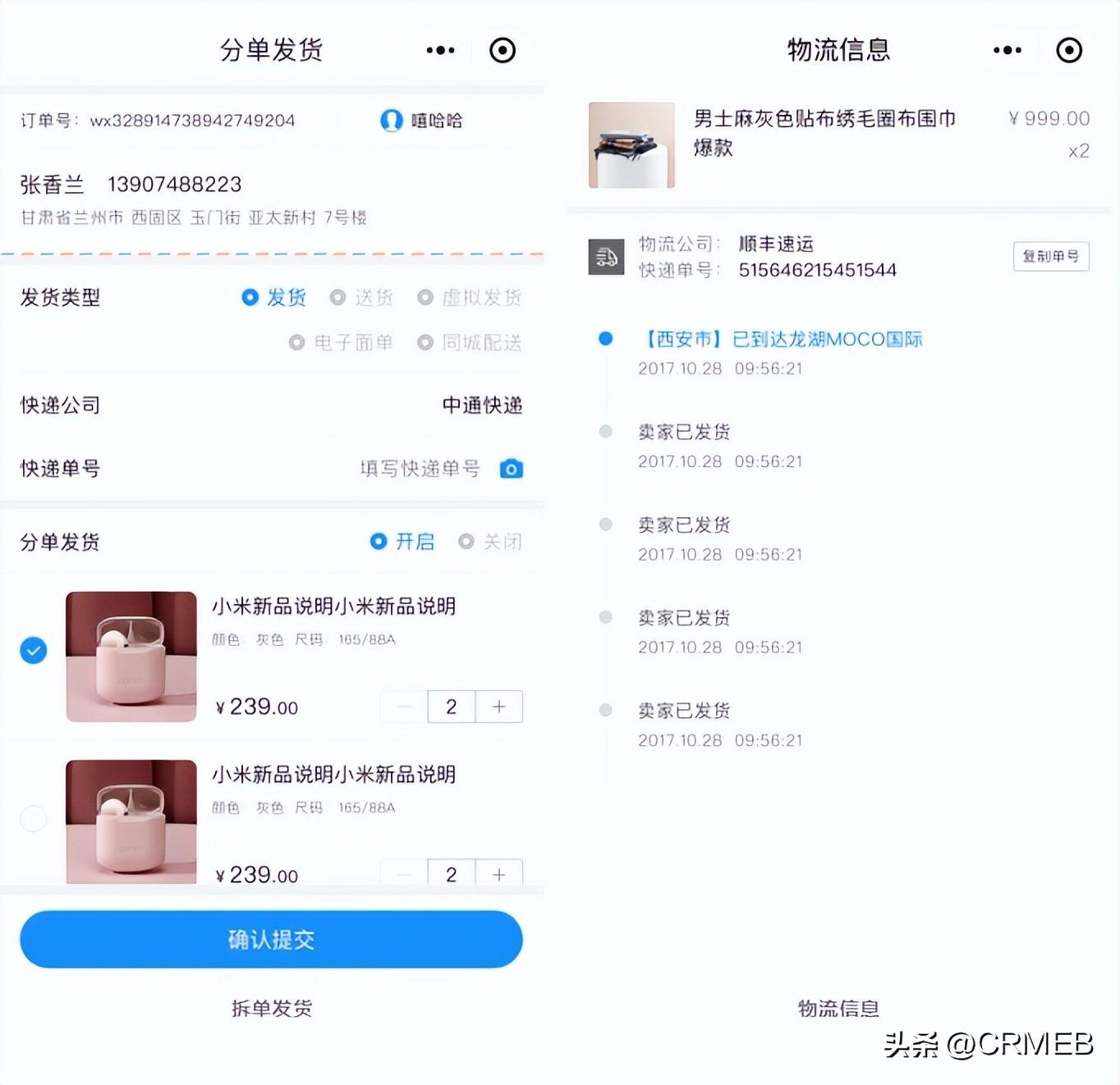 系统支持拆单发货,可对多个商品订单进行拆分发货,还能进行物流跟踪,让消费者实时掌握物流情况。