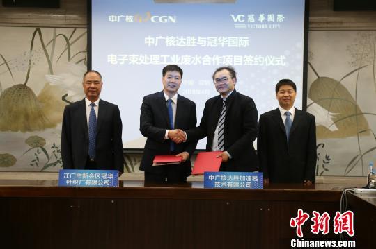 该项目合作双方为中广核核技术发展股份有限公司旗下中广核达胜加速器技术有限公司和冠华国际控股有限公司属江门市新会区冠华针织厂有限公司。