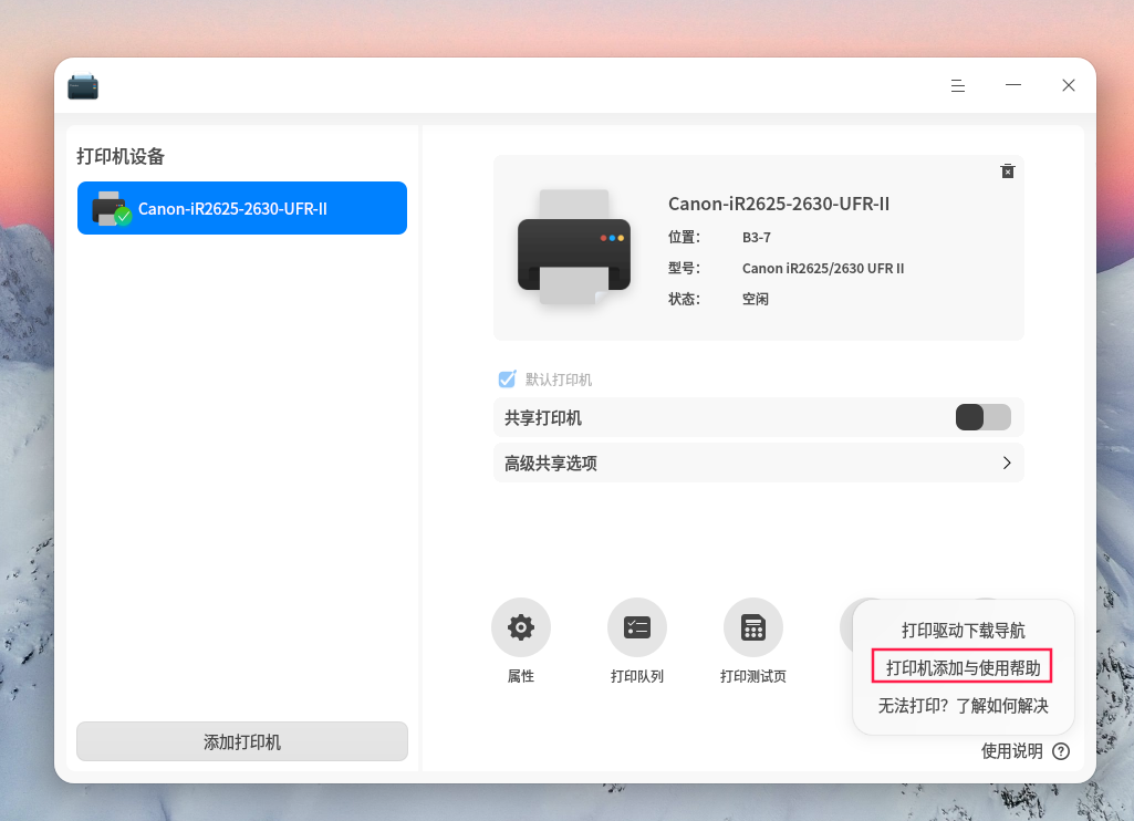 用户前往打印机详情界面,启用“共享打印机 ”开关,即可完成打印机共享,实现局域网内访问