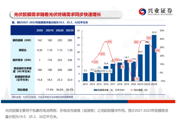 在分析师看来,光伏胶膜的需求也在增长,预计2022年和2023年需求量为25.3、32亿平方米。光伏胶膜企业们也在借资本市场持续扩产中。这是否会和上游硅料一样出现产能过剩的隐患?