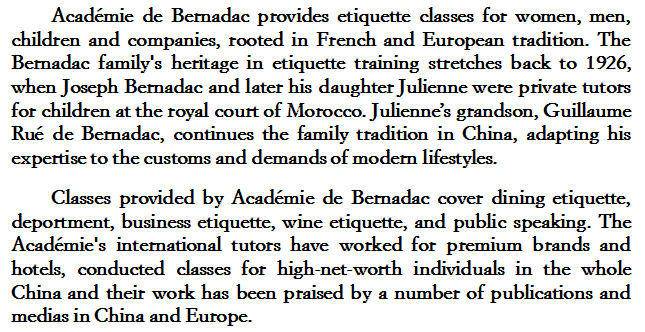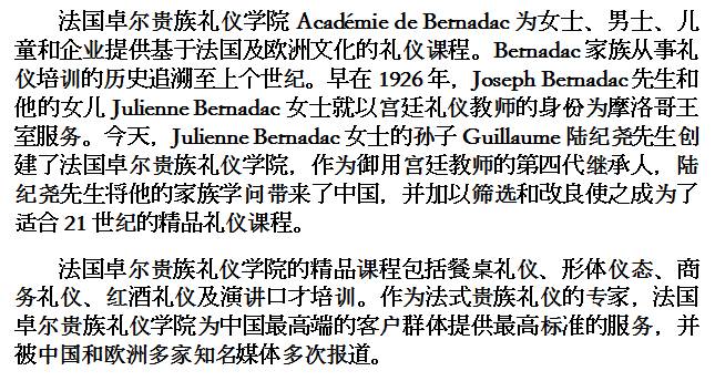 您可以在微信上查找“法国卓尔礼仪”