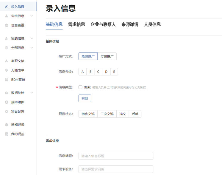 2)实现询盘信息从信息开发(SEO/PPC等)、信息接待(售前客服)到信息跟进(销售员)的高效率流转,一个系统全部搞定。