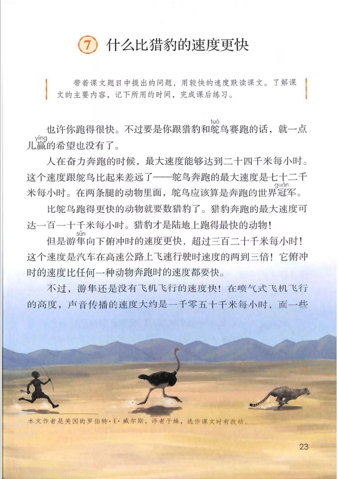 2019秋新版部编语文五年级上册第7课《什么比猎豹的速度更快》课文朗读音频+ 电子课本