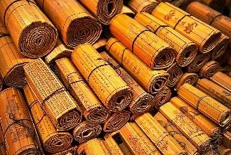 当然,这种笨重的书使用起来当然是极不方便的。据说,秦始皇每天批阅的竹简和木片上的文字,那竹简和木片有一百二十斤重。西汉的时候,东方朔给汉武帝写了一篇文章,用了三千片竹简,是由两名身强力壮的武士吃力地抬到宫廷里面去的。汉武帝把竹简一片一片地解下来看,足足用了两个月的时间才看完。
