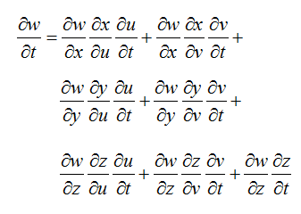 设w是x,y,z的函数;x是u,v, s的函数;y是u,v的函数; z是u,v,t的函数;u,v都是s,t的函数,求w对t的偏导数。