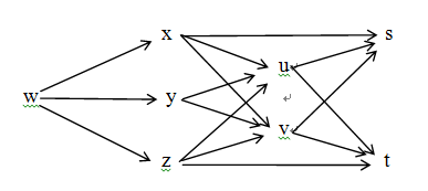 从w到t的路径有七条:w-x-u-t, w-x-v-t, w-y-u-t,w-y-v-t, w-z-u-t, w-z-v-t, w-z-t。